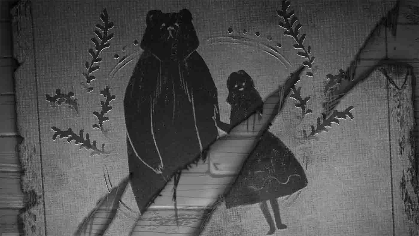 Opening Image: Sound of fighting sounded as a wedding tapetry between a girl and a bear was slashed violently. Theme of marriage and abuse established
